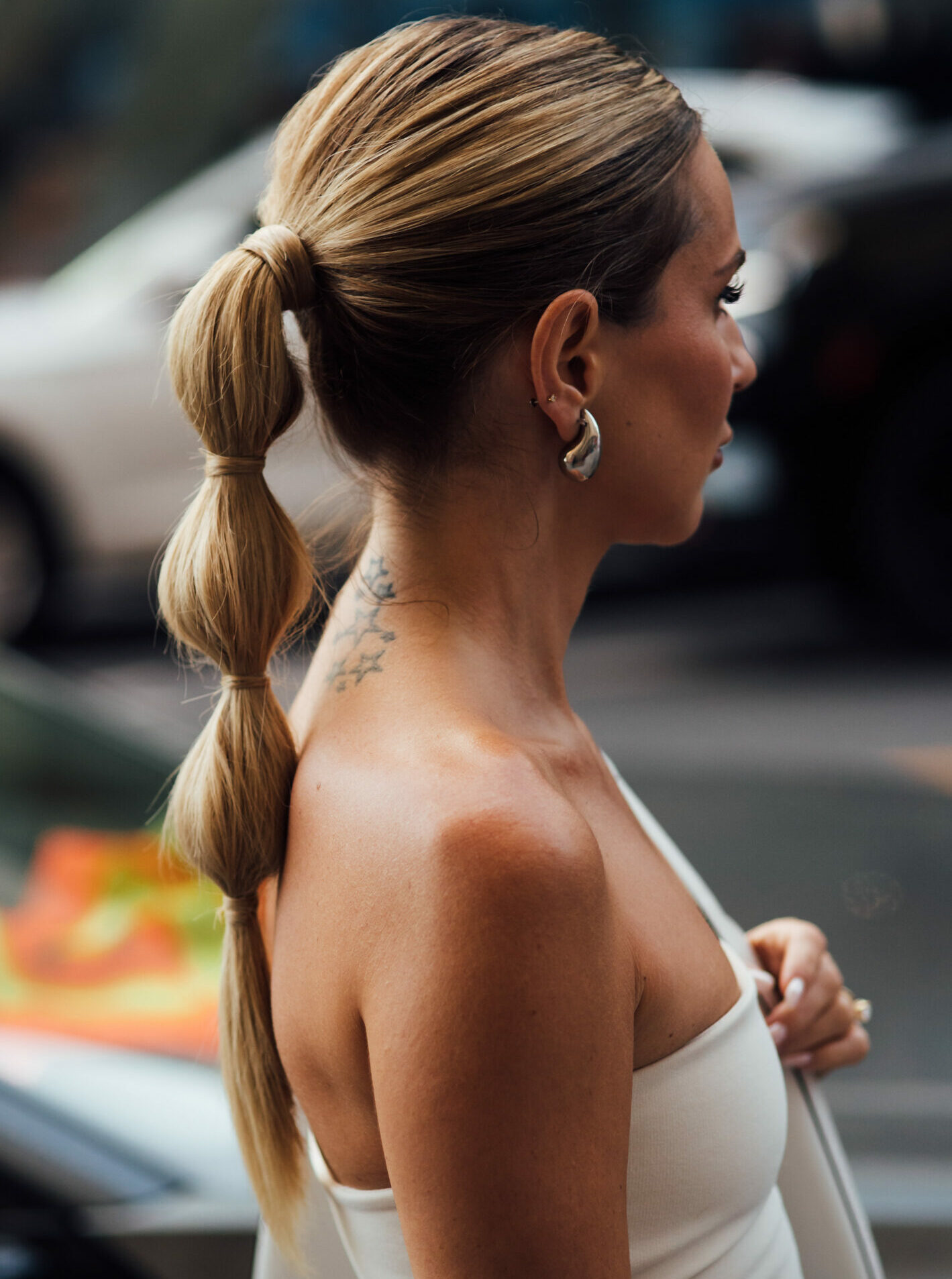 Ένας από τους πιο εύκολους τρόπους να αναβαθμίσουμε την κοτσίδα μας είναι τα αξεσουάρ μαλλιών. Ένα μεταξωτό μαντήλι δεμένο στη βάση της κοτσίδας ή τυλιγμένο γύρω της προσθέτει αμέσως στυλ και χαρίζει μία ρομαντική πινελιά σε κάθε look. Αν προτιμάμε κάτι πιο παιχνιδιάρικο, μπορούμε να επιλέξουμε μια κορδέλα σε έντονο χρώμα ή ένα βελούδινο scrunchie που δίνει όγκο και κάνει το αποτέλεσμα πιο effortless.