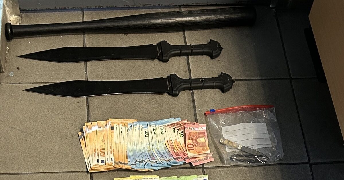 Η αστυνομική έρευνα στους Αμπελόκηπους ξεκίνησε από τυχαίο έλεγχο σε έναν 31χρονο που βρέθηκαν πάνω του ναρκωτικά και κατέληξε σε έρευνα στο σπίτι άλλου 31χρονου ο οποίος τον είχε προμηθεύσει με αυτά, όπου αποκαλύφθηκε πλήρης εξοπλισμός που παραπέμπει σε οργανωμένη δραστηριότητα διακίνησης αλλά και ρόπαλα και σπαθιά, με τον άνδρα λίγο πριν μπουν οι αστυνομικοί για να ψάξουν το σπίτι να πετά στον ακάλυπτο της πολυκατοικίας μία τσάντα με κάνναβη.