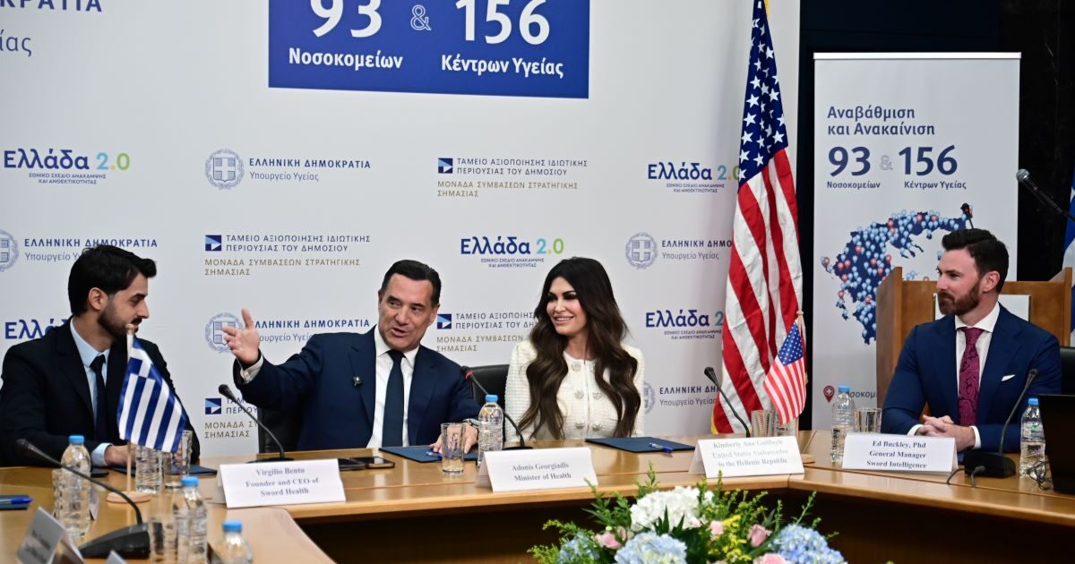 Την Κίμπερλι Γκιλφόιλ υποδέχθηκε στο υπουργείο ο Άδωνις Γεωργιάδης. Εκτός από την Αμερικανίδα πρέσβη στη συνέντευξη παρών είναι ο διευθύνων σύμβουλος της Sword Health, μιας από τις μεγαλύτερες εταιρείες Τεχνητής Νοημοσύνης, Βιρτζίλιο Μπέντο, ενώ θα παρέμβει και εκπρόσωπος του Παγκόσμιου Οργανισμού Υγείας.