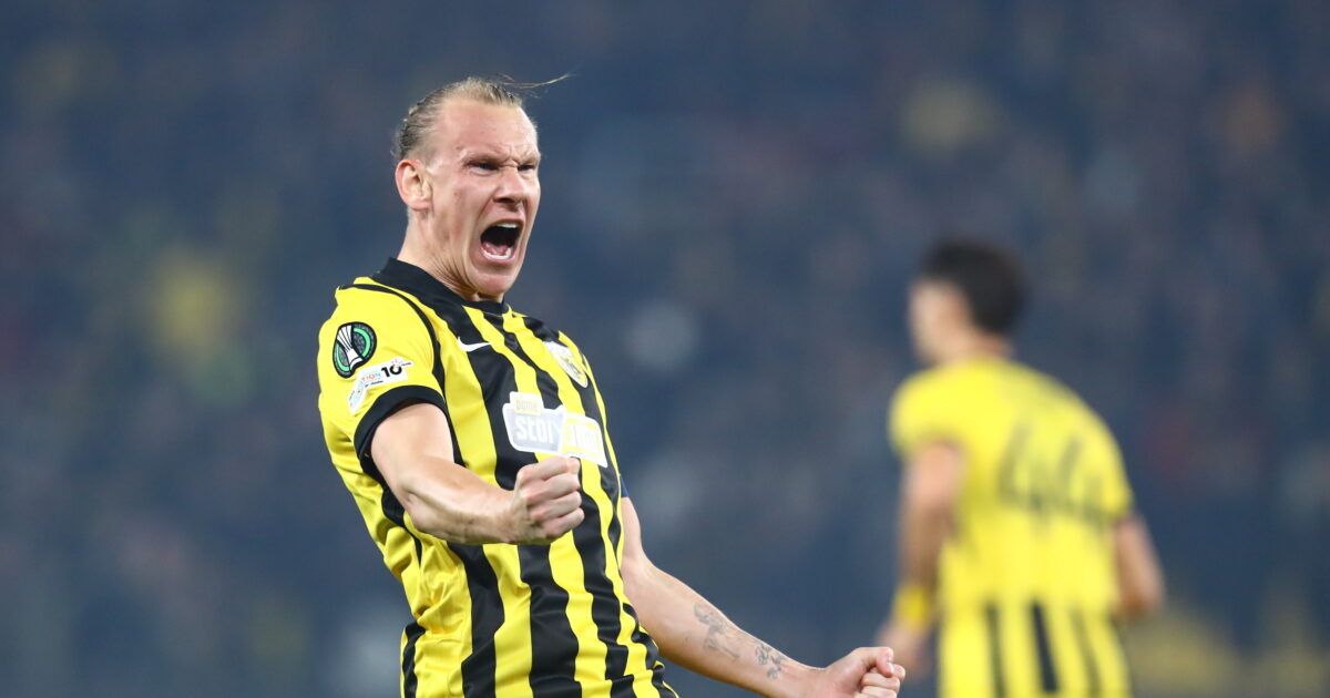 Ο Βίντα πανηγυρίζει γκολ του με την ΑΕΚ/ (ΜΑΡΚΟΣ ΧΟΥΖΟΥΡΗΣ / EUROKINISSI)