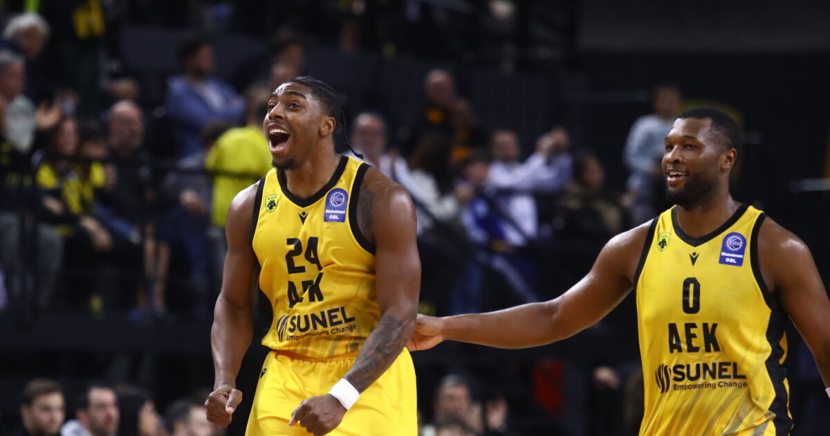 H AEK επέστρεψε από το -8 στην τέταρτη περίοδο, πήρε τη 7η σερί νίκη της στην GBL κι έφτασε τις 10 συνολικά σε Ελλάδα και Ευρώπη. Η Ένωση συνεχίζει έτσι στην 3η θέση του βαθμολογικού πίνακα (ρεκόρ 12-4) και έχει μπροστά της το μεγάλο ματς στην έδρα του ΠΑΟΚ, που την ακολουθεί (11-4) και στον πρώτο γύρο είχε επικρατήσει μέσα στα Άνω Λιόσια. Το Μαρούσι παρέμεινε στην 13η θέση με 3-14.