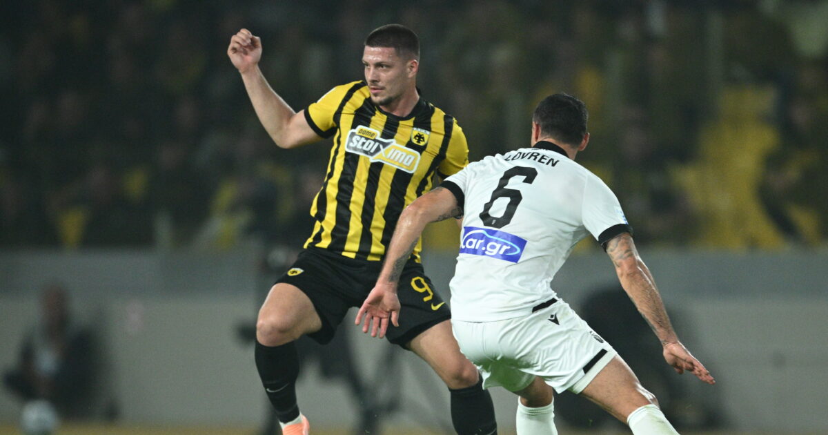 Η ενδεκάδα της ΑΕΚ: Στρακόσια – Ρότα, Βίντα, Μουκουντί, Πήλιος – Γκρούγιτς, Μάριν – Κοϊτά, Ζοάο Μάριο, Κουτέσα – Γιόβιτς.