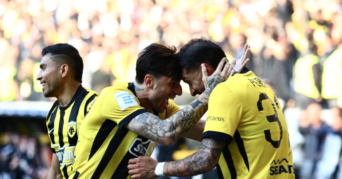 Το αυτογκόλ του Κεντζιόρα, με το οποίο η ΑΕΚ μπήκε σε θέση οδηγού στο ντέρμπι με τον ΠΑΟΚ στη Νέα Φιλαδέλφεια, για τη 2η αγωνιστική των πλέι οφ της Super League.