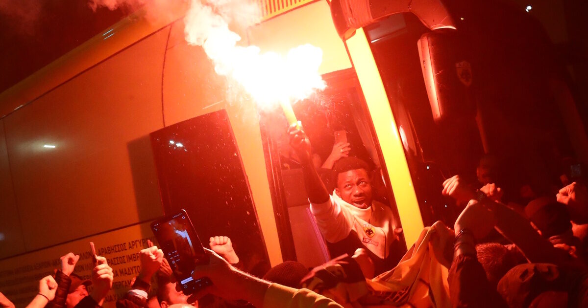 Σύνθημα στα χείλη των φίλων της ΑΕΚ έγιναν ο Μάρκο Νίκολιτς, ο Ορμπελίν Πινέδα, ο Θωμάς Στρακόσα αλλά και ο σκόρερ της νίκης στο «Καραϊσκάκης», Αμπουμπακαρί Κοϊτά.