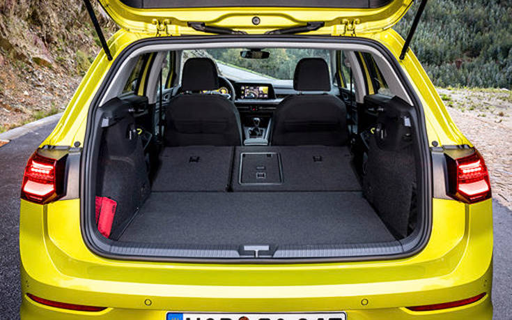 Η 8η γενιά Golf προσφέρει άφθονο χώρο για πέντε άτομα, μαζί με χώρο αποσκευών 380 λίτρων σε πλήρη διαμόρφωση καθισμάτων. Όταν η ασύμμετρα αναδιπλούμενη πλάτη των πίσω καθισμάτων διπλωθεί, η χωρητικότητα φόρτωσης αυξάνεται στο μέγιστο των 1.237 λίτρων. Σε σύγκριση με το προηγούμενο μοντέλο, ο χώρος των ώμων (1.420 χλστ. μπροστά, 1.370 χλστ. πίσω) και το ύψος της κεφαλής (1.018 χλστ. μπροστά, 968 χλστ. πίσω) είναι σχεδόν αμετάβλητοι.