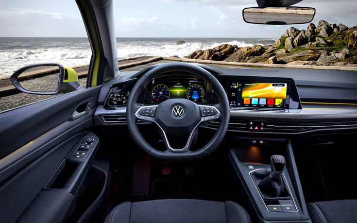 Το Golf πλέον αναπτύσσει στενή σχέση με τον… οδηγό του. Ένας ενοποιημένος πίνακας ελέγχου ανήκει στο βασικό εξοπλισμό και περιλαμβάνει τα ψηφιακά όργανα (Digital Cockpit) με οθόνη 10 ιντσών, το επίσης στάνταρ σύστημα Infotainment Composition (οθόνη αφής 8.25 ιντσών με 1.083 x 480 pixels) και ένα πολυλειτουργικό τιμόνι. Όλα τα συστήματα ραδιοφώνου και πλοήγησης, αποτελούν μέρος της τρίτης γενιάς του συστήματος Infotainment Matrix (MIB3) και συνδέονται με μια ηλεκτρονική μονάδα σύνδεσης (OCU) που διαθέτει eSIM.