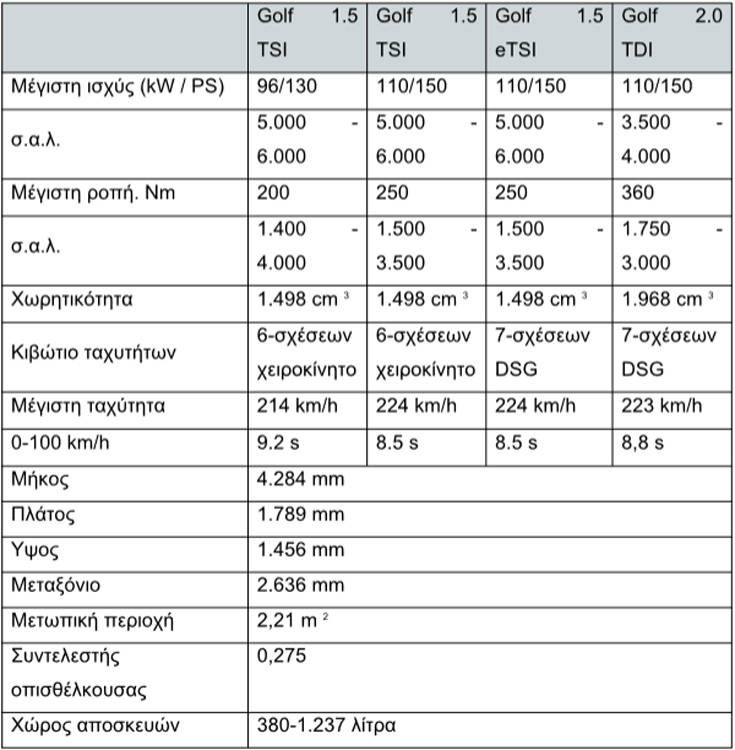 Τα τεχνικά χαρακτηριστικά του νέου Golf