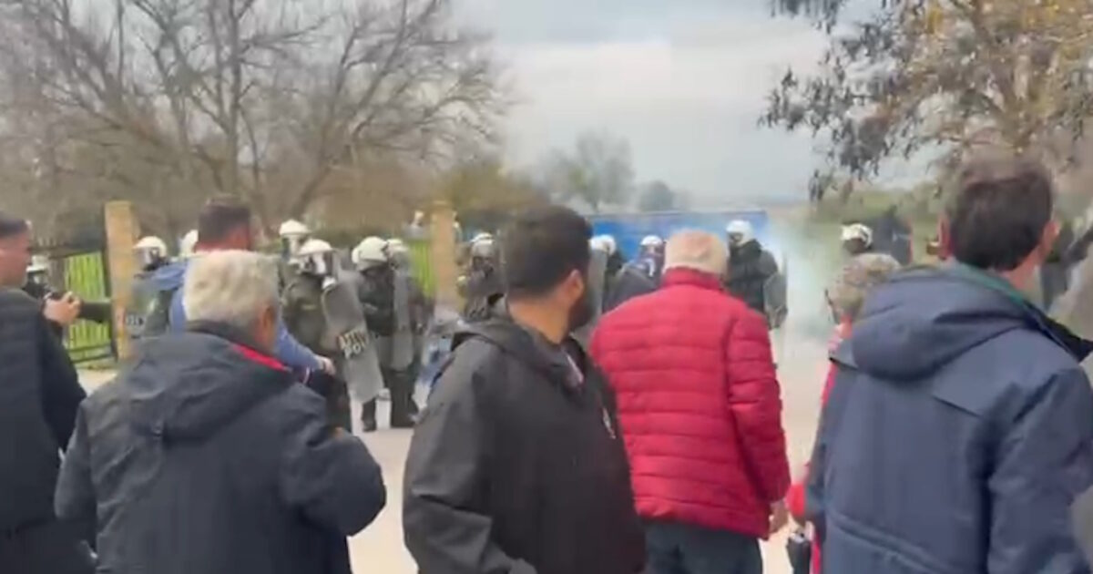 Σε βίντεο από τα επεισόδια στο σημείο «Πράσινα Φανάρια», στο αεροδρόμιο της Θεσσαλονίκης, έχει καταγραφεί η στιγμή που αγρότες πετούν πέτρες εναντίον των αστυνομικών.