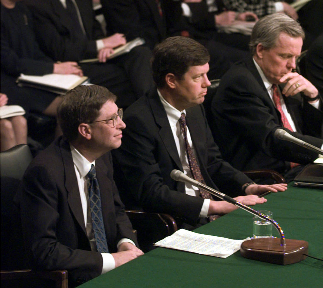Την ίδια μέρα, η αξιωματούχος του υπουργείου Δικαιοσύνης και 20 γενικοί εισαγγελείς των ΗΠΑ κατέθεσαν τη μηνυτήρια αναφορά κατά της Microsoft. Μερικές εγκλήσεις και αντεγκλήσεις μετά και πέντε μήνες αργότερα, η υπόθεση θα έφτανε στο δικαστήριο, με τη βιντεοσκοπημένη κατάθεση του Μπιλ Γκέιτς να μετατρέπεται σε πανεθνικό θέαμα. Πριν γίνει παγκόσμιο…