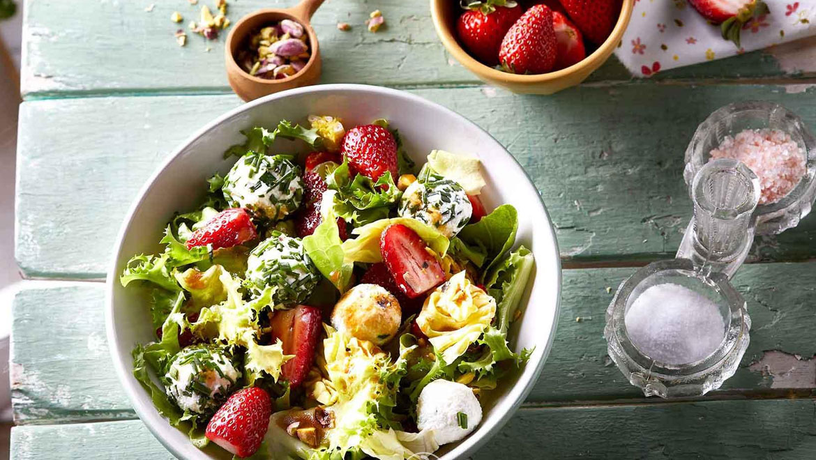 Για την ανοιξιάτικη σαλάτα με φράουλες φτιάχνουμε πρώτα τις μπάλες τυριού. Θα χρησιμοποιήσουμε φρέσκα μαλακά λευκά τυριά της άνοιξης.