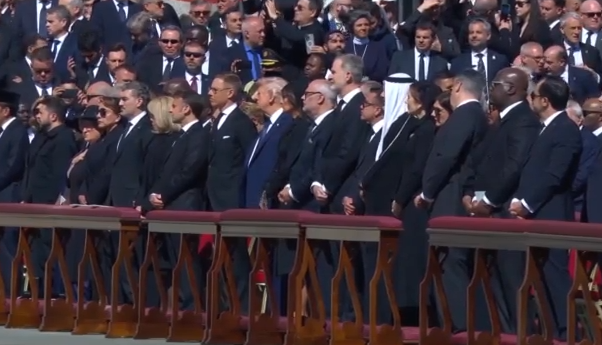 Βασιλείς και αρχηγοί κρατών αποχαιρέτησαν τον Πάπα Φραγκίσκο στην πλατεία του Αγίου Πέτρου. Τηρήθηκε το αυστηρό πρωτόκολλο του Βατικανού για τις θέσεις των επισήμων, ωστόσο δεν έλειψαν και τα απρόοπτα.