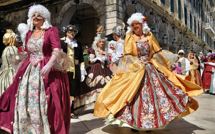 Έτσι, κόντες και κόμισες, αυλικοί και κυρίες των τιμών, ντυμένοι με τις χαρακτηριστικές μπαρόκ στολές του 18ου αιώνα γεμίζουν τους δρόμους στο ιστορικό κέντρο της Κέρκυρας, θυμίζοντας στους επισκέπτες του νησιού των Φαιάκων κάτι από την αίγλη, τη φινέτσα και τη χλιδή των περασμένων αιώνων.