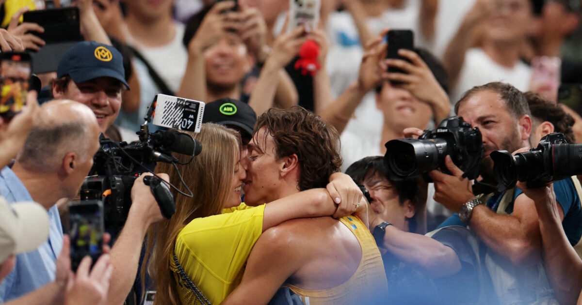 Αμέσως μετά το… παγκόσμιο άλμα του Ντουπλάντις, ο Σουηδός «πνίγηκε» στην αγκαλιά του Εμμανουήλ Καραλή και άλλων συμπαικτών του, ενώ στη συνέχεια κατευθύνθηκε προς την εξέδρα και τη σύντροφό του.