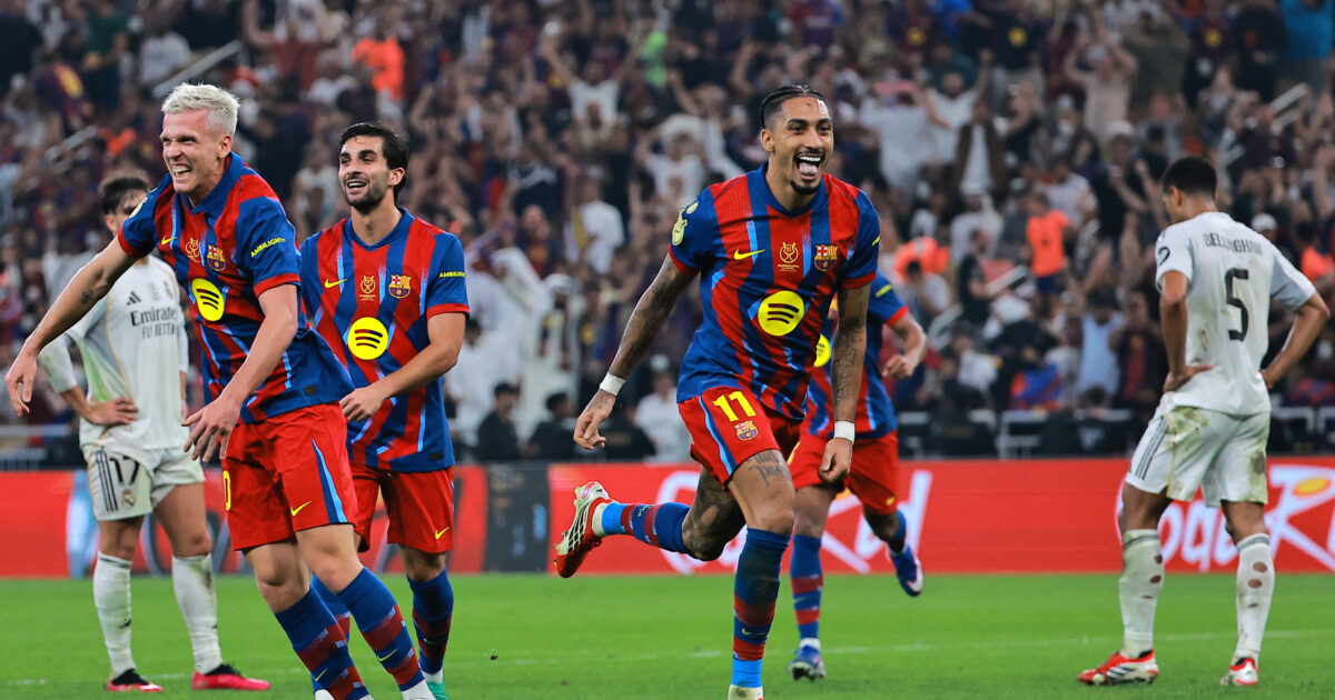 Μπαρτσελόνα και Ρεάλ Μαδρίτης μας “χάρισαν” μια ματσάρα στον τελικό του Super Cup Ισπανίας που έγινε στην Τζέντα, με τους Καταλανούς να επικρατούν με 3-2 και να σηκώνουν για 16η φορά το βαρύτιμο τρόπαιο. Δυο γκολ ο Ραφίνια στην αναμέτρηση. Μεγάλες χαμένες ευκαιρίες οι “μερένγκες” στις καθυστερήσεις για την ισοφάριση.