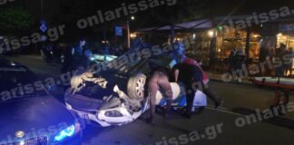 Λάρισα: Τρομακτικό τροχαίο με τρεις τραυματίες – Αναποδογύρισε το ένα όχημα