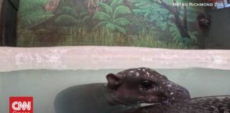 Οι βουτιές ενός μικρού ιπποπόταμου και τα παιχνίδια με τη μαμά...