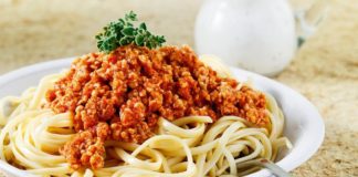 Μπολονέζ με κιμά κοτόπουλου και σάλτσα γιαουρτιού