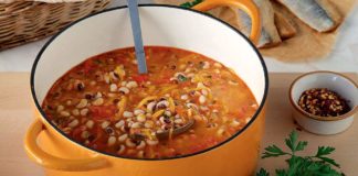 Φασολάδα με μαυρομάτικα, δεντρολίβανο και ξύσμα πορτοκαλιού