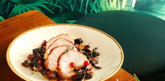 Χοιρινός λαιμός με άγρια μανιτάρια και κράνμπερις