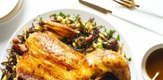 Καπόνι με άγριο ρύζι, κάστανα και μήλα
