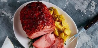 Χοιρινό μπούτι με καραμέλα κρασιού και ανανά