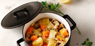 Πατάτες λεμονάτες με μανιτάρια και κεφαλοτύρι