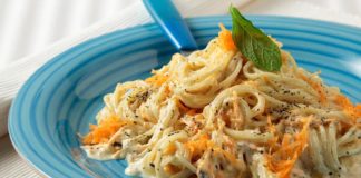 Σπαγκέτι με σκορδάτη σάλτσα γιαουρτιού