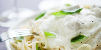 Σπαγγέτι με σολομό και τσίπουρο