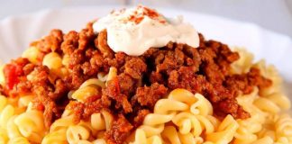 Ζυμαρικά με κιμά και σκορδάτο γιαούρτι