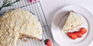 Λαχταριστό κέικ με φρούτα και λευκό γλάσο