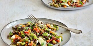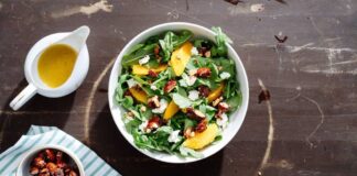Πράσινη σαλάτα με κοτόπουλο και σάλτσα πορτοκαλιού