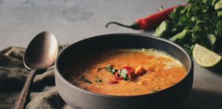 Πέντανότιμη βελουτέ σούπα με κόκκινες φακές και γλυκοπατάτες
