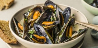 Αχνιστά μύδια με λευκό κρασί