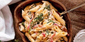 Πεντανόστιμη μακαρονάδα με πένες, καπνιστή γαλοπούλα και δεντρολίβανο