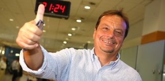 Ο Εργκίν Αταμάν απάντησε με υψωμένες γροθιές στους οπαδούς της Μακάμπι που περίμεναν την αποστολή του Παναθηναϊκού έξω από το γήπεδο
