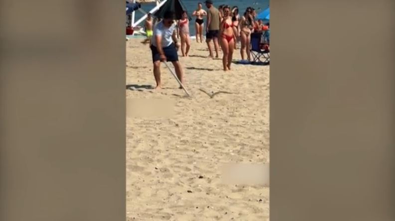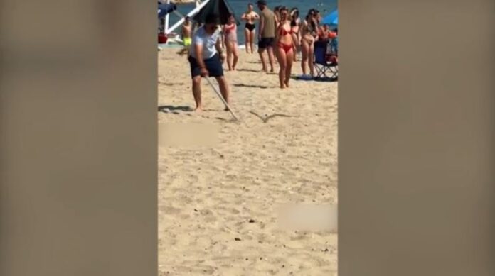 Το βίντεο με το φίδι έκανε τον γύρο του διαδικτύου και όπως φαίνεται στα πλάνα, ένας άνδρας προσπαθεί να το απομακρύνει από την άμμο, χρησιμοποιώντας ένα ξύλο.
