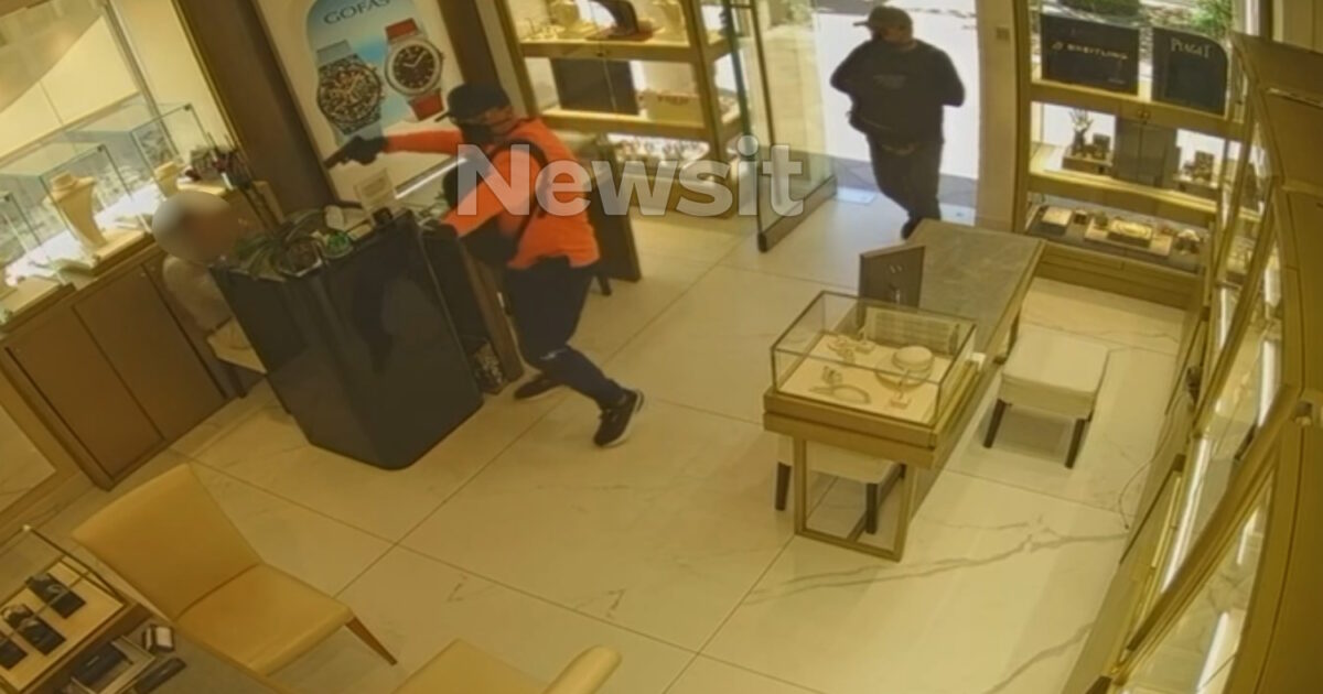 Όπως φαίνεται στα πλάνα από την ληστεία – μαμούθ στη Σάνη Χαλκιδικής, οι 2 δράστες φορώντας μάσκες, κουκούλες και γάντια, μπαίνουν στο κοσμηματοπωλείο με σηκωμένα τα όπλα και σημαδεύουν τους 2 υπαλλήλους. Ξεκινούν να φωνάζουν και να απειλούν, αναγκάζοντας τους εργαζόμενους να πέσουν με τα γόνατα στο έδαφος. Ενώ ο ένας δράστης συνεχίζει να σημαδεύει με το όπλο, ο 2ος αδειάζει από τις βιτρίνες τα πανάκριβα κοσμήματα της επιχείρησης που βρίσκεται μέσα σε γνωστό ξενοδοχειακό συγκρότημα της περιοχής.