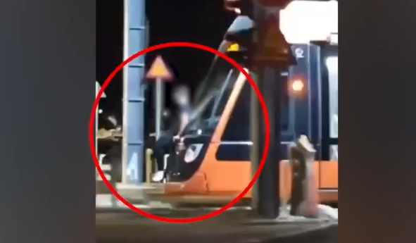 Νεαρός καταγράφεται να έχει σκαρφαλώσει στο πίσω μέρος του τραμ… όσο αυτό είναι εν κινήσει.