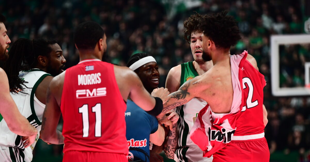 Ο κακός χαμός έγινε στο παρκέ του Telekom Center λίγο πριν το φινάλε του πρώτου ημιχρόνου του ντέρμπι Παναθηναϊκός – Ολυμπιακός, με τον Κέντρικ Ναν και τον Τάιλερ Ντόρσεϊ να έρχονται στα χέρια.