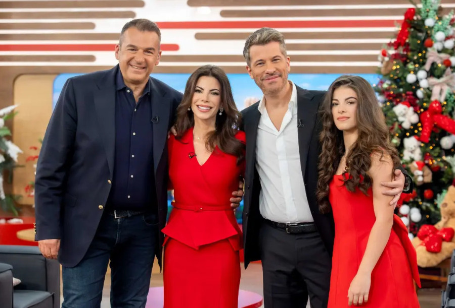 Ιδιαίτερα συγκινητική ήταν η στιγμή που στο πλατό βρέθηκε και η 13χρονη κόρη τους, Λιόνα. Δεν περιορίστηκε απλώς σε μια παρουσία δίπλα στους γονείς της, αλλά τόλμησε να τραγουδήσει, τόσο μόνη της όσο και με τον μπαμπά της. Μάλιστα, η ίδια αποκάλυψε πως το αγαπημένο της τραγούδι δεν είναι του παππού της ούτε του μπαμπά της, αλλά της Νατάσας Θεοδωρίδου, το «Κόκκινη Γραμμή».