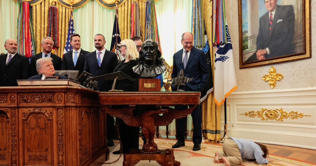 Κατά τη διάρκεια της παρουσίας του στο Οβάλ Γραφείο, ο μικρός τράβηξε τα βλέμματα όταν άρχισε να κινείται αυθόρμητα στον χώρο. Σε μια χαρακτηριστική στιγμή, ξάπλωσε στο χαλί, προκαλώντας χαμόγελα στους παρευρισκόμενους.
