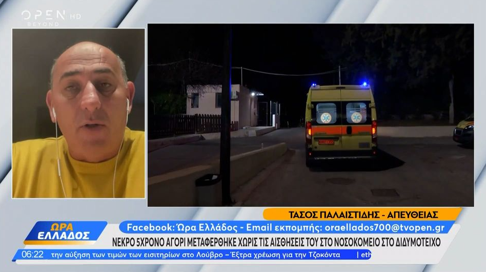 Όπως είπαν στους γιατρούς, το παιδί ήταν άρρωστο. Μάλιστα, σύμφωνα με το ΟΡΕΝ, ο 5χρονος φαίνεται να είχε πνευμονία, επισκέφτηκε παιδίατρο με τους γονείς του, δόθηκε θεραπεία και ίσως να μην έγινε σωστή εκτίμηση-διάγνωση ή σωστή φαρμακευτική αγωγή.