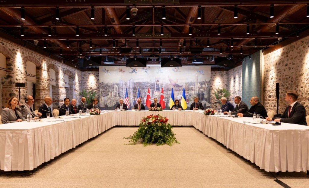 Ο επικεφαλής της αποστολής, Βλαντίμιρ Μεντίνσκι συναντήθηκε με τον Τούρκο υπουργό Εξωτερικών, Χακάν Φιντάν λίγο πριν τις συνομιλίες με την Ουκρανική πλευρά.