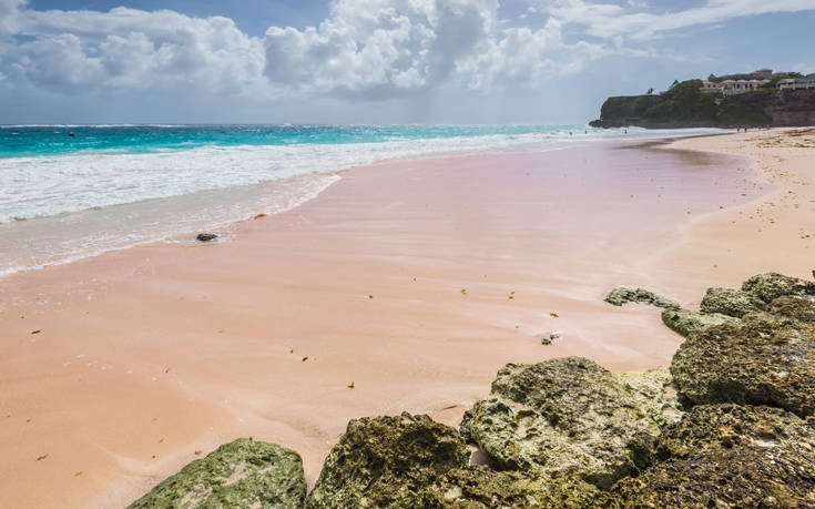 Πλούσια βλάστηση και τιρκουάζ νερά «αγκαλιάζουν» την ροζ ακτογραμμή της παραλίας Crane Beach, στην ανατολική ακτή του μικρού κοραλλιογενούς νησιού της Καραϊβικής. Η παραλία είναι γνωστή για τα εντυπωσιακά της κύματα και τα πολυτελή ξενοδοχεία που προσθέτουν λίγο «πολιτισμό» στην παρθένα εικόνα της φύσης που απλώνεται μπροστά σας.