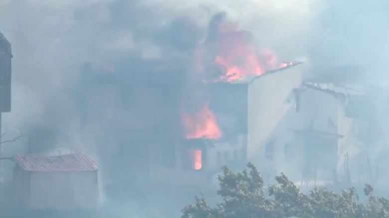 Σύμφωνα με πληροφορίες, σπίτια έχουν παραδοθεί στις φλόγες, ενώ μία αποθήκη κάηκε ολοσχερώς.
