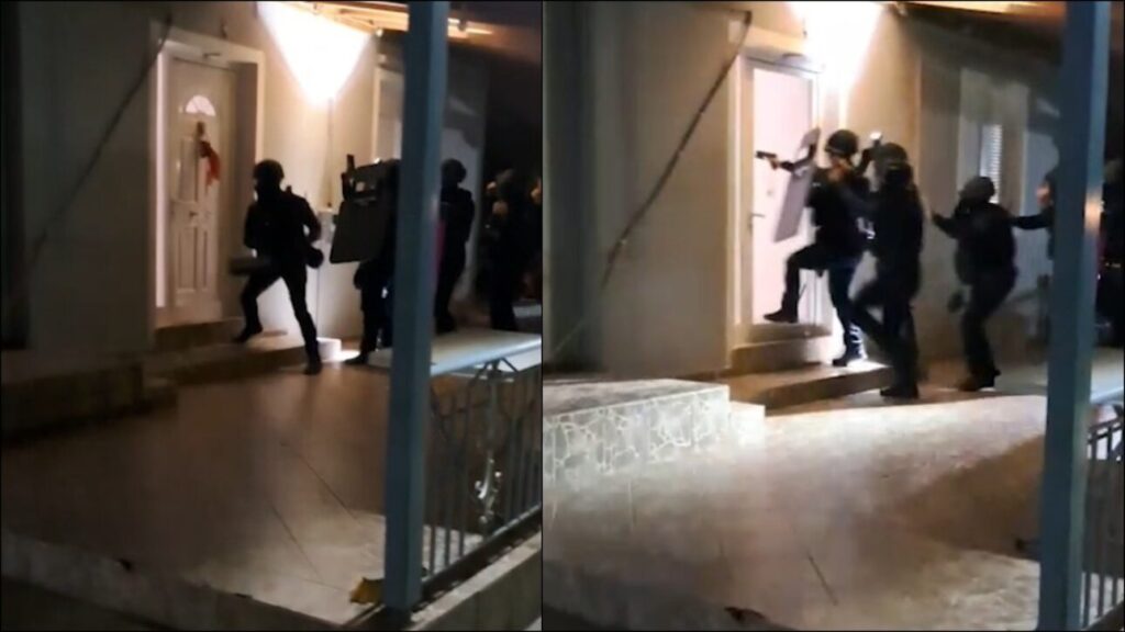 Στο παρακάτω βίντεο φαίνεται η στιγμή που πάνοπλοι άνδρες της Αστυνομίας εισβάλλουν σε σπίτια μελών της συμμορίας.