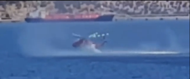 Είναι οι δραματικές στιγμές της αναγκαστικής προσθαλάσσωσης του πυροσβεστικού ελικοπτέρου Erickson ανοιχτά της Ελευσίνας.