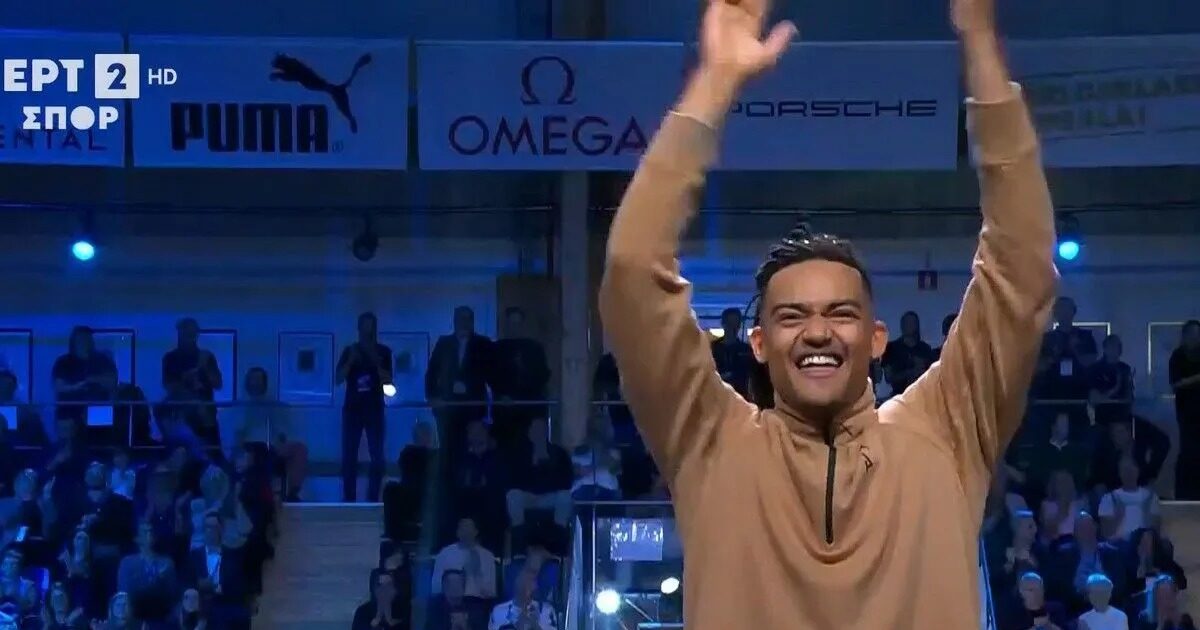 Ο Έλληνας αθλητής εμφανίστηκε με ένα τεράστιο χαμόγελο και καταχειροκροτήθηκε.