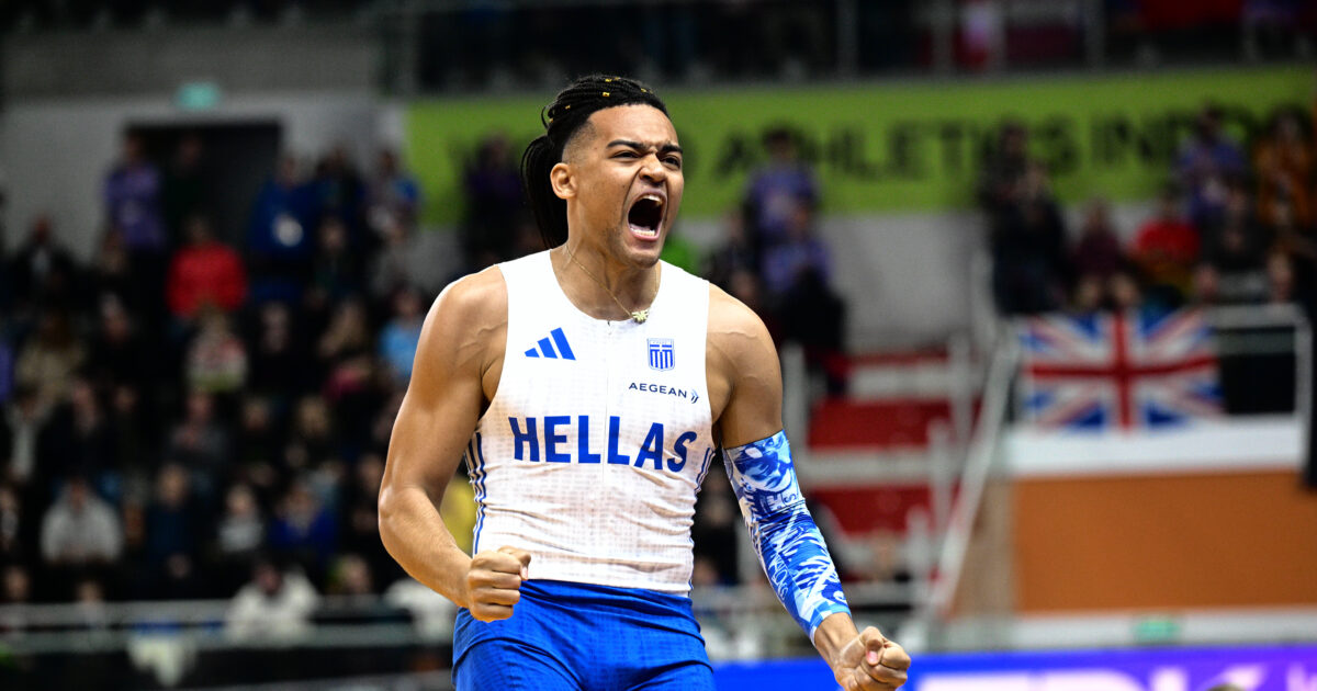 O Εμμανουήλ Καραλής πανηγυρίζει στο παγκόσμιο πρωτάθλημα κλειστού στίβου (ΑΝΤΩΝΗΣ ΝΙΚΟΛΟΠΟΥΛΟΣ / EUROKINISSI)