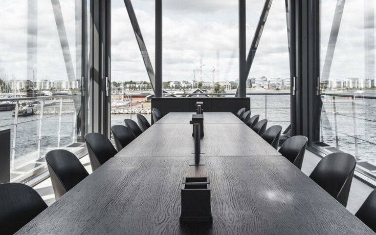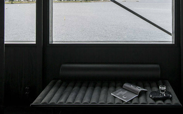 Οι εσωτερικοί χώροι κινούνται σε σκούρες αποχρώσεις, εμπνευσμένες από το σκουρόχρωμα γκρι του άνθρακα, ενώ τα κομψά, χειροποίητα έπιπλα από δέρμα, ξύλο, ατσάλι και πέτρα σε συνδυασμό με τα επιλεγμένα έργα που διακοσμούν τους χώρους δημιουργούν μια εντυπωσιακή ατμόσφαιρα που ταιριάζει απόλυτα με τη φιλοσοφία και την ιδιαιτερότητα του σκανδιναβικού ντιζάιν.